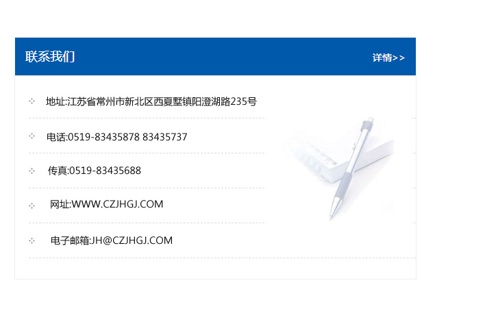 地址:常州市新北區友邦商務大廈1幢16、17層  電話:0519-85101652  傳真:0519-85112595  郵編:213022  網址:www_cz-jiayue_cn.chenfengde.com  郵箱:xiajifengaa@163.com